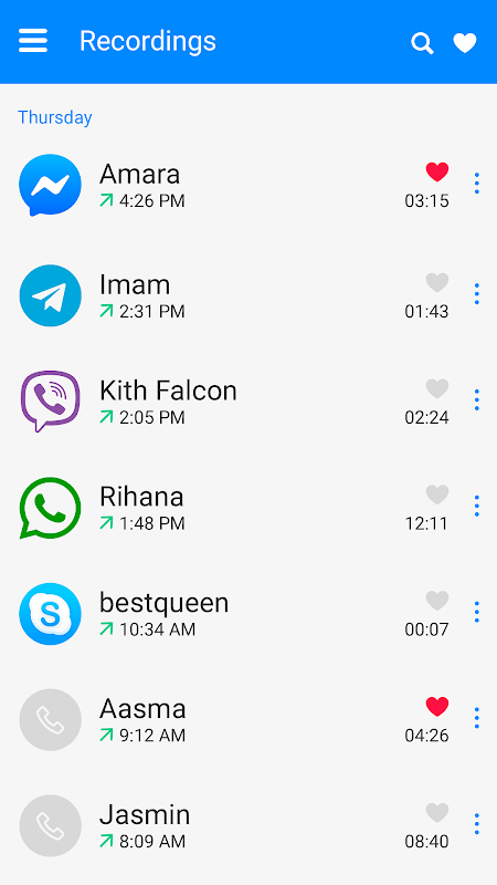 - Organize your call recordings. You can view the list of files in order by time, by name.