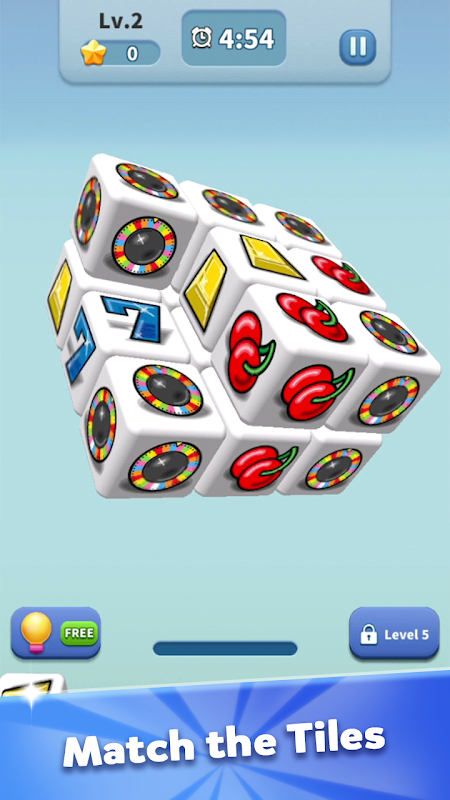 3Dキューブを回転させ、3つの同じタイルを見つけてレベルを完了します。