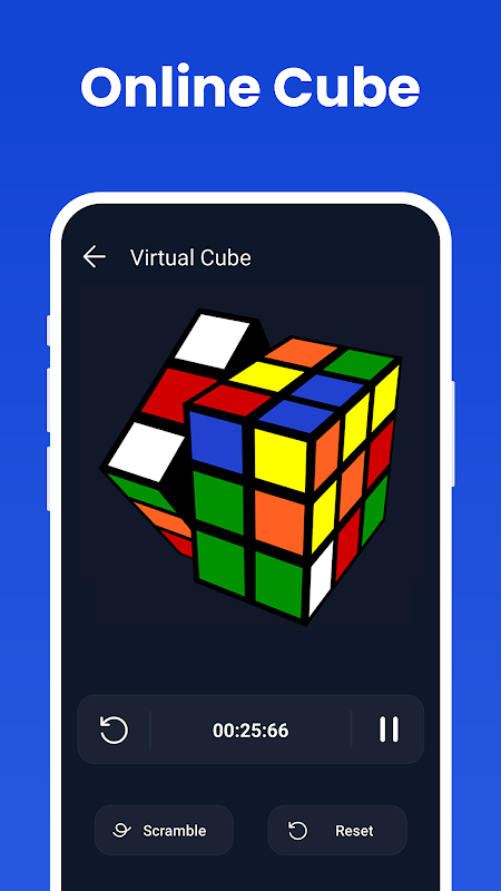 ルービックキューブソルバー アプリケーションは、練習用の仮想キューブを提供します。ユーザーは、パズルを解く時間をメモし、キューブを解決済みの状態にリセットし、新しい解決課題に取り組むためにキューブをスクランブルすることができます。