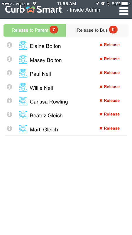 CurbSmartは、学生の組織化のリリースを調整するために学校管理者の内側と外側をできるように、瞬時にピックアップレーンの到着を同期させ、使いやすいアプリです。