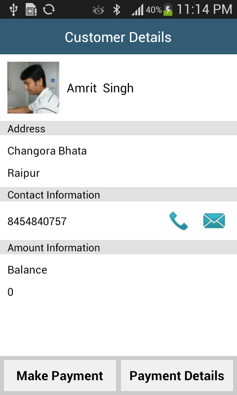 Payment Records: All payments entries list like call history, user can see a particular customer's all payment details by selecting him in the list.