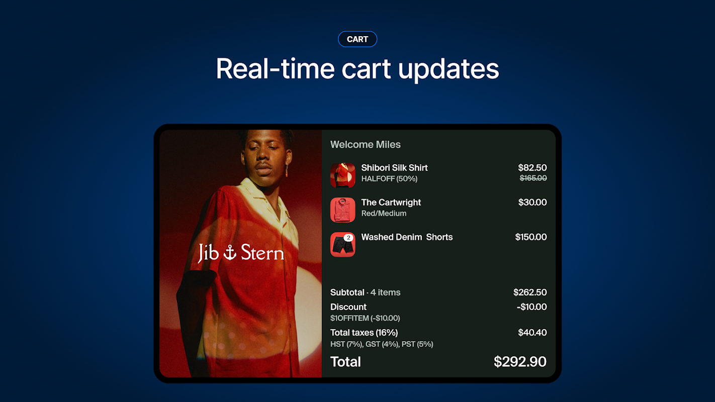 リアルタイムで何が起きているかを顧客に表示し、チェックアウト エクスペリエンス全体を通して、あなたと顧客が同じページにとどまることができるようにします。