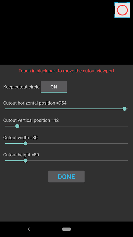 This app offers many settings which allow you adjusting the cutout ring's color, thickness, animation.