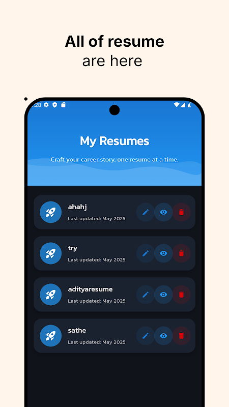 ダウンロードして共有: 履歴書を PDF 形式でエクスポートし、アプリから直接共有します。