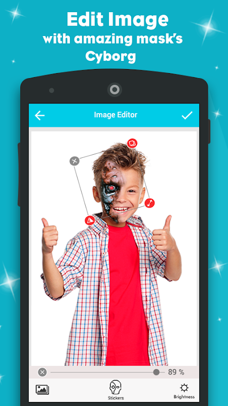 Now you can makeup Cyborg robot and machine and add many sticker’s simulator virtual to your insta photos sticker ,you makeup artistic and start special cosplay photo face swap manipulations is incredibly easy, also this app equipped with a sticker machine and magical live photo which makes pattern you very similar to sweet Cyborg roboolux Camera machine Editor,Say Goodbye to Photoshop when you can edit your own photos with the best and the simplest application of virtual make*up around the world,