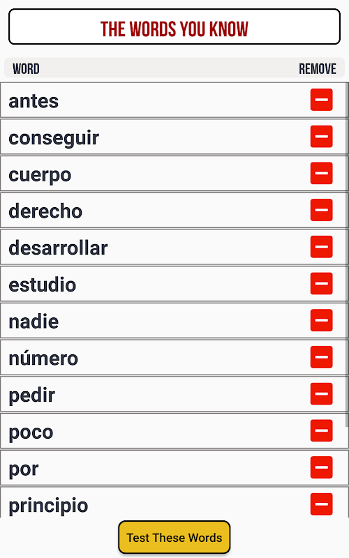 スペイン語の語彙、練習、勉強、テスト、暗記を学びます。ワードリマインダー、カード。
