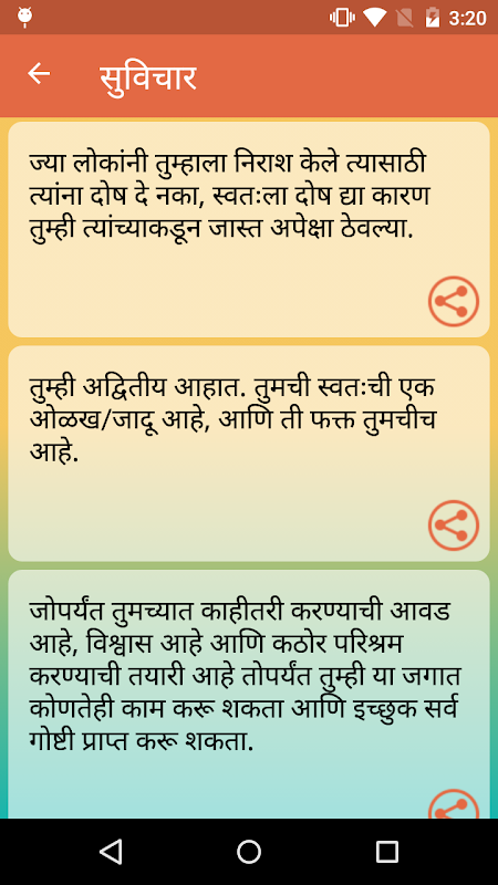 This app is a good solution for teachers. In this app, you can share Marathi Suvichar, Marathi Mhani with your loved once, family and friends.