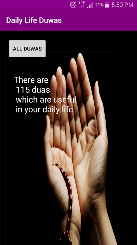 The application contain 115 duwa related to the tasks you dily perform in your busy routine .By reciting these duwas you can earn many blessing of Allah and can be Successful in after life . These duwa will play important role in your life .Approximately every duwa is being mention with the reference related to the book of Ahadis .Hope you will like it!!
