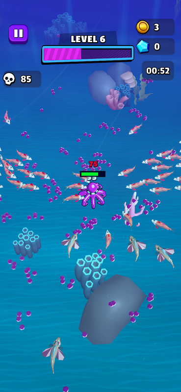 深海に潜り、海の暗い世界でタコとしてサバイバルの旅に乗り出しましょう!Darkness.io で手ごわい敵でいっぱいの挑戦的な海の冒険に備えましょう。能力を強化し、敵を倒し、海で最大のタコになることを目指しましょう!