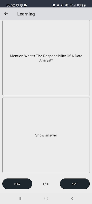 データアナリスト 勉強 募集は、就職の面接の準備に役立つアプリケーションです。 データアナリストに関連する問題についての知識が深まります。このアプリとパートナーとの練習により、面接中のパフォーマンスが大幅に向上し、自信を持ってより適切に対応できるようになります。