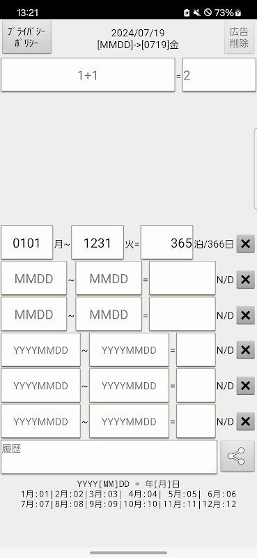 日数カウント計算機電卓アプリ