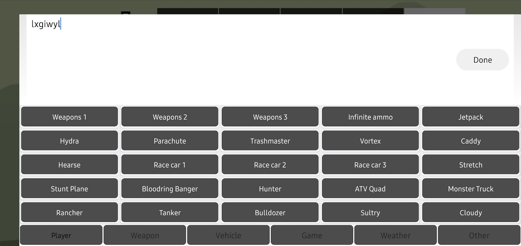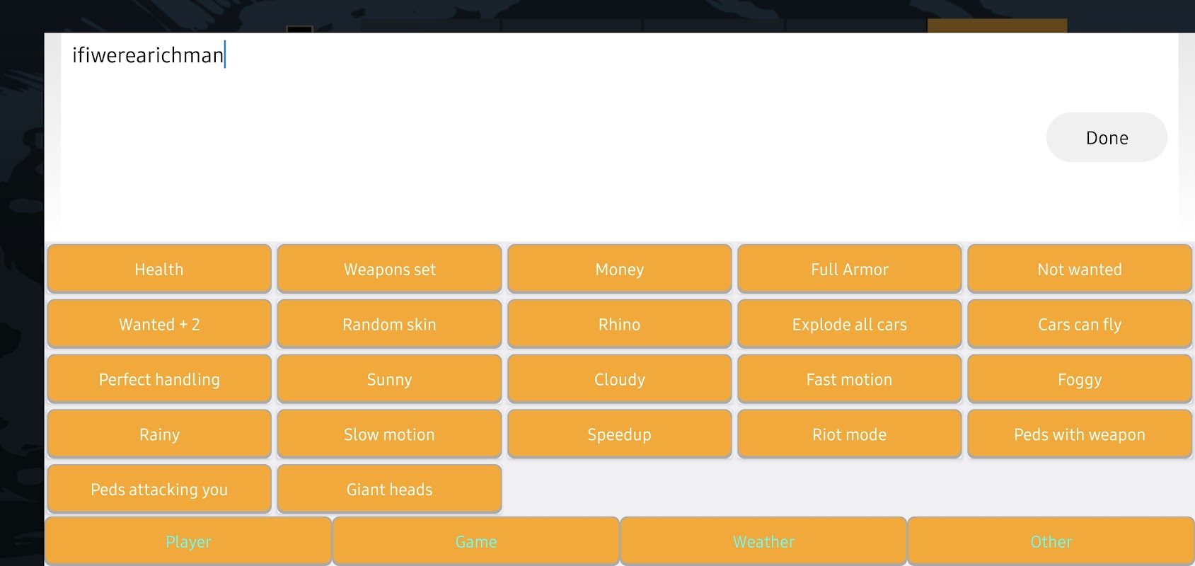 ゲームの開発者によって考案された、専用フィールドにチート コードを入力するオプションが提供されています。