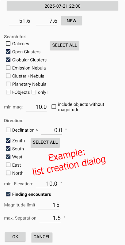 特定の天体クラスから観測リストを作成し、特定の観測夜に明るさや位置で天体を選択できます。