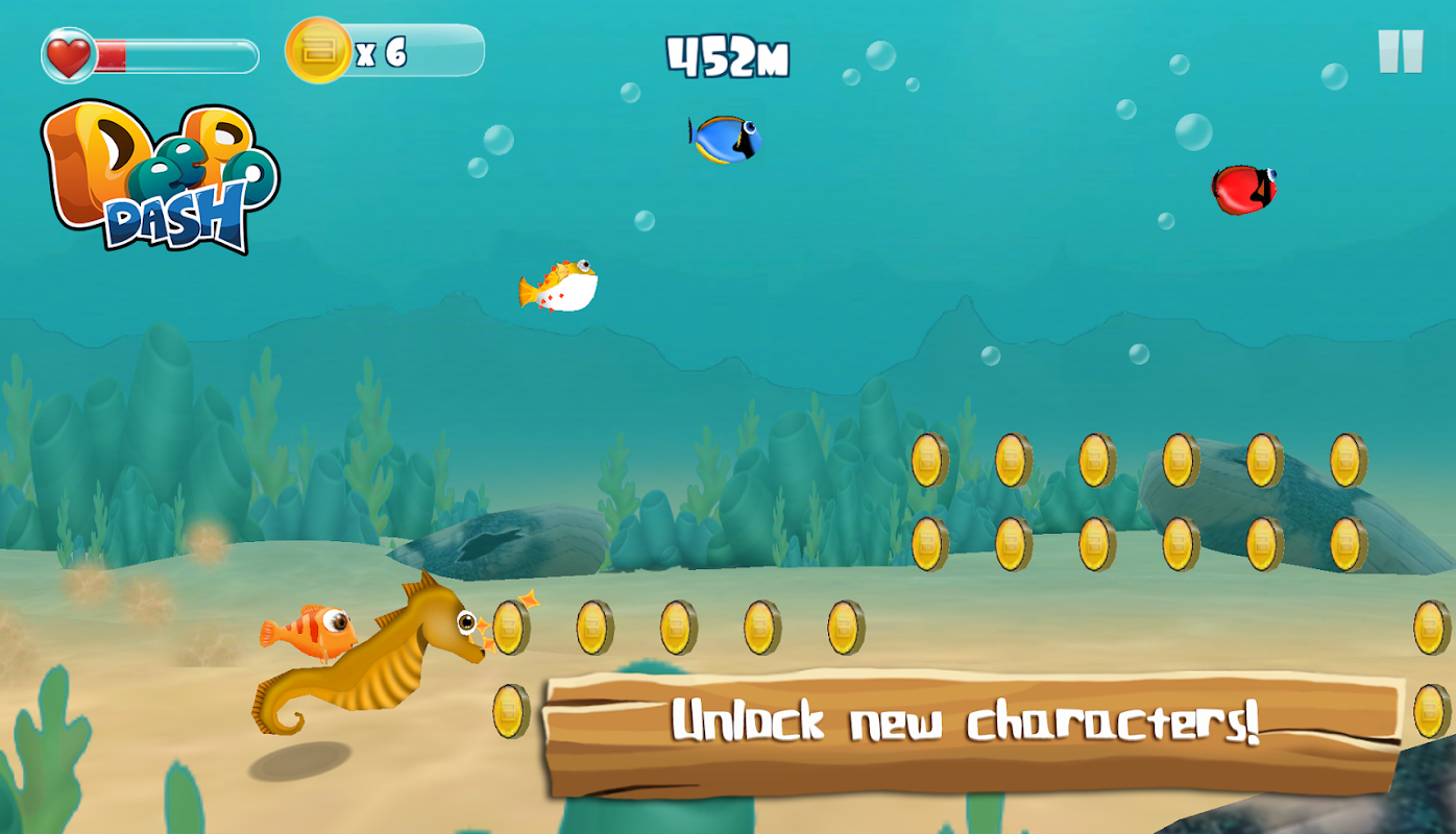 Deepo Dash is an endless swimmer, in which you control Deepo the fish, by tapping your screen to collect items and dodge obstacles. It is a fun game for young and old, that becomes more challenging the further you get.