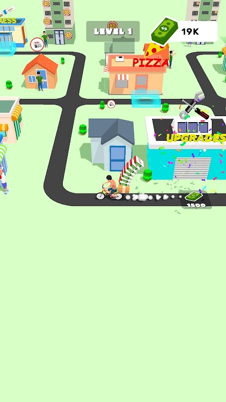 小包、ピザ、新聞を受け取り、お客さんのところに送ってお金を稼ぎ、レベルアップしましょう。