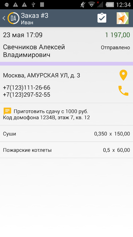 このプログラムは、レストランの管理者/ディスパッチャーと宅配便業者の間でオンラインで情報を交換し、次の機能を提供します。