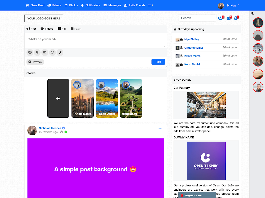 このソーシャル ネットワーク アプリケーションを使用すると、友達とつながり、写真、ビデオ、イベント、投票などを投稿できます。