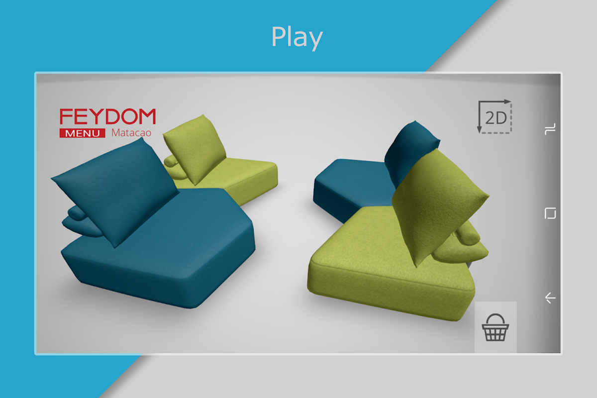 The Android app helps you to create a FEYDOM sofa set customized for the interior of your home by using the latest 3D technology. Choose a model and add its components to your choice.