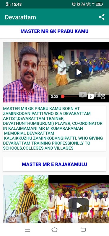 Mr M KANNAN KUMAR and Kalaimani Annan Mastro Mr K NELLAI MANIKANDAN Devarattam troupe' s Devarattam Added in the App's Homepage.