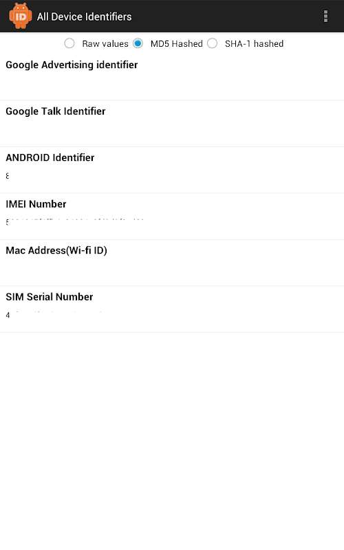 アンドロイドプラットフォームでは現在、様々な目的で色々な種類のIDが存在しています。このアプリからチェックできる主なIDには以下が含まれます。