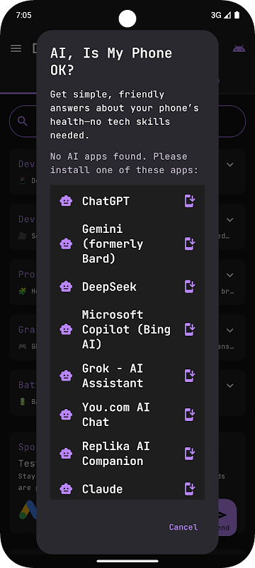 🔍 スマートフォンの調子はどう?AI が教えてくれます。DeviceGPT AI は、Android スマートフォンをスキャンし、状態、パフォーマンス、プライバシー状態をチェックする世界初のアプリです。その後、ChatGPT、Gemini、Claude、Perplexity といったアプリに、人間のようなフレンドリーな回答で状況を説明してもらいます。バッテリー残量やネットワークグラフで混乱することはありません。スキャン→共有→理解するだけ。 🧠 DeviceGPT AI でできること ✅ スマートフォンのパフォーマンス、バッテリー、ストレージ、温度をスキャンします ✅ マイクまたはカメラが最近使用されたかどうかを検出します (スパイチェック) ✅ ロック中にスマートフォンが移動したかどうかを表示します (スヌープ防止) ✅ スマートインターネット速度とプライバシーテストを実行します ✅ ルートアクセス、USB デバッグ、開発者モードを確認します ✅ スマートフォンがデバイス上で AI を実行できるかどうかをテストします (LLM、NNAPI チェック) ✅ インストールされているアプリ内の広告トラッカー SDK を検出します ✅ 偽の GPS/センサースプーフィングツールを検出します ✅ 完全な概要を生成し、AI アプリと共有します (ChatGPT、Gemini、Claude、Perplexity) 🤖 AI に説明してもらいます スキャン後、「AI に質問」をタップして、お気に入りの AI アプリを選択します。「バッテリーが少し過熱しています。ストレージがほぼいっぱいです。マイクは昨晩使用されました。これについて説明し、修正するための 1 ~ 2 つのヒントを教えていただけますか?」 ✅ タイピング不要 ✅ AI が自然言語で返信 ✅ 初心者、パワーユーザー、開発者、プライバシーを重視する方に最適 🔐 プライバシー第一。常に。アカウントは不要 オフラインで動作(ほとんどの機能) 共有しない限り、データはどこにも送信されません スキャン結果はデバイスにのみ保存されます 分析、追跡、サードパーティのクラウドは使用していません 💡 DeviceGPT の AI 機能が愛される理由 ユーザーの声 🧠 AI を活用した洞察「ChatGPT は、どのアプリよりもバッテリーの状態を説明してくれました。」 🔍 マイク/カメラログ「午前 2 時にマイクを使用しているアプリを見つけました。」 👣 モーション検出「ロック中に電話がタッチされているのをキャッチしました。」 🔐 ルートチェック+スプーフィングアラート「セキュリティを重視するユーザーには便利です。」 📡 ネットワークレポート「ISP がストリーミングを制限しているかどうかも教えてくれました。」 🚀 次のような方に最適 「なぜ私の電話は遅い、熱い、または変なのですか?」テクニカルグラフに飽き飽きしてシンプルなアドバイスを求めるユーザー お子様のデバイスをチェックする保護者 簡単なテストを行う開発者 プライバシーを重視し、安全性を確保したいユーザー ChatGPT、Gemini、Claude、または Perplexity を定期的に使用するすべてのユーザー 🌐 サポートされている AI アシスタント アプリ ChatGPT (OpenAI) Gemini (Google Bard) Claude (Anthropic) Perplexity AI DeepSeek Microsoft Copilot (Bing AI) You.com Replika Grok (X AI) プロンプトは事前に入力されます。数秒でスマートな回答が得られます。 🧩 主な機能の概要 ⚡ 電話パフォーマンススキャン 🔋 バッテリーの状態と充電速度 💾 ストレージ分析 🔥 温度監視 👁️ マイクとカメラの使用状況ログ 👣 ロック中のモーション検出 🔐 ルート、デバッグ、SELinux チェック 🤖 AI 互換性テスター 📡 インターネット速度テスト + DNS + ISP プライバシー 🛡️ センサースプーフィングとトラッカー SDK スキャン 📤 1 回のタップで AI アシスタントにエクスポート 🧠 AI 応答用のスマート プロンプト ジェネレーター 🆕 近日公開 アプリレベルのバッテリーと CPU 使用率 VPN および DNS リーク検出 AI によるパーソナライズされた最適化プラン 即時のプライバシー リスク スコアリング 詳細な履歴とオフライン AI 推奨事項を備えたプロ版 💬 AI からの応答 「Facebook のバックグラウンド同期をオフにしてください。バッテリーを消耗しています。」 「昨夜、マイクが 3 回アクセスされました。アクセス許可を取り消したほうがよいかもしれません。」 「Wi-Fi の速度は良好ですが、ジッターがゲームに影響する可能性があります。」 「ストレージが 90% 使用されています。使用していないアプリや写真を消去してください。」 📱 お使いの携帯電話には、より良い答えが必要です。今すぐ DeviceGPT AI を試して、AI が Android の内部で何が起こっているかを説明しましょう。今すぐダウンロードして、たった 1 回のスキャンで安心を手に入れましょう。キーワード:AI 電話スキャン、ChatGPT 電話アナライザー、マイクカメラログアプリ、電話ヘルスチェッカー、遅い電話を修正する AI、Android バッテリースキャナー、AI デバイス診断、AI 付きデバイススキャナー、Android プライバシーアプリ、スマートフォンレポート AI、ネットワーク速度テスト AI、