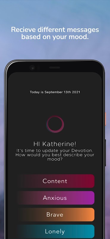 Devotion は、ユーザーの性別や気分に応じて、愛するユーザーに向けたメッセージを調整する Embrace の肯定ツールです。