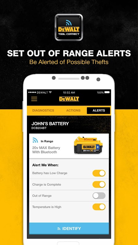 生産性を高め、ツールConnect™をアプリで盗難を抑止するのに役立ちます。 、在庫を管理し、失われたツールを見つけて、リモートでカスタマイズされた設定を使用してツールを接続し™灯を制御するためにあなたのデバイスを使用してください。