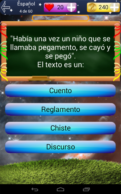 我々は、細胞またはする、快適で便利な場所での質問に入れ、レビュー、実践を研究し、学校のタブレットで実現します診断テストであなたの結果を改善するのに理想的。このゲームは、クラスや学校の活動に大きな加えています。