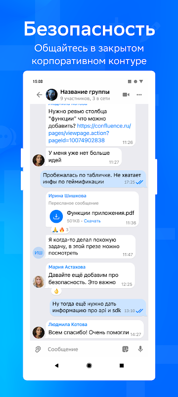 - Резайте задачи и достигайте целей быстрее с коллегами в личных и групповых чатах;