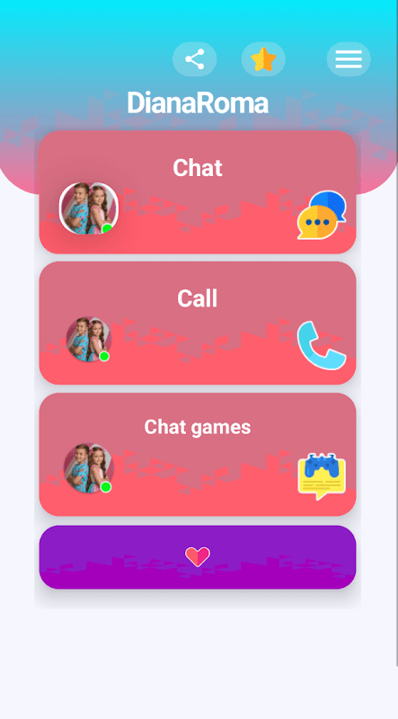 • 🎮 年齢当てや頭の中で数字を当てようなど、ユニークなダイアナとローマのチャットゲームをプレイできます。