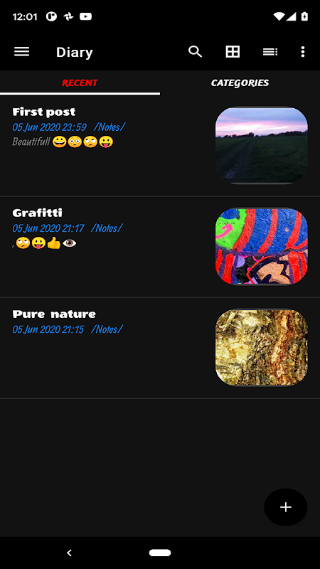 最新の日記アプリはAndroid11以降にも対応しています。モダンダークモードのとても美しい日記アプリです。