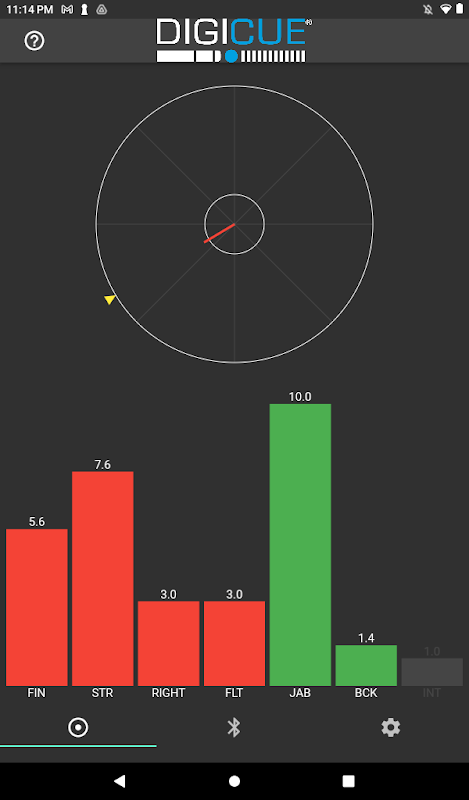 DigiCue BLUE はストロークの不一致を常に監視し、ストロークの欠陥を測定すると静かに振動して即座にフィードバックを提供します。さらに、各ショットの統計情報をスマートフォンまたはモバイル デバイスの DigiCue アプリにワイヤレスで送信します。