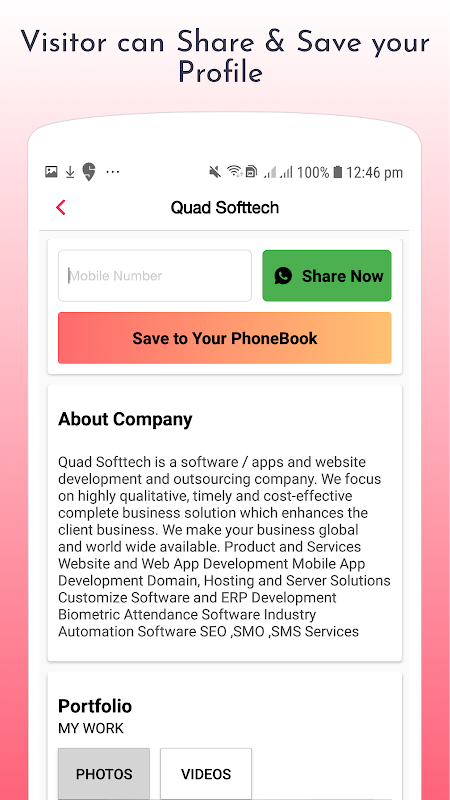 -Using This app you can saves your visiting card printing costs!