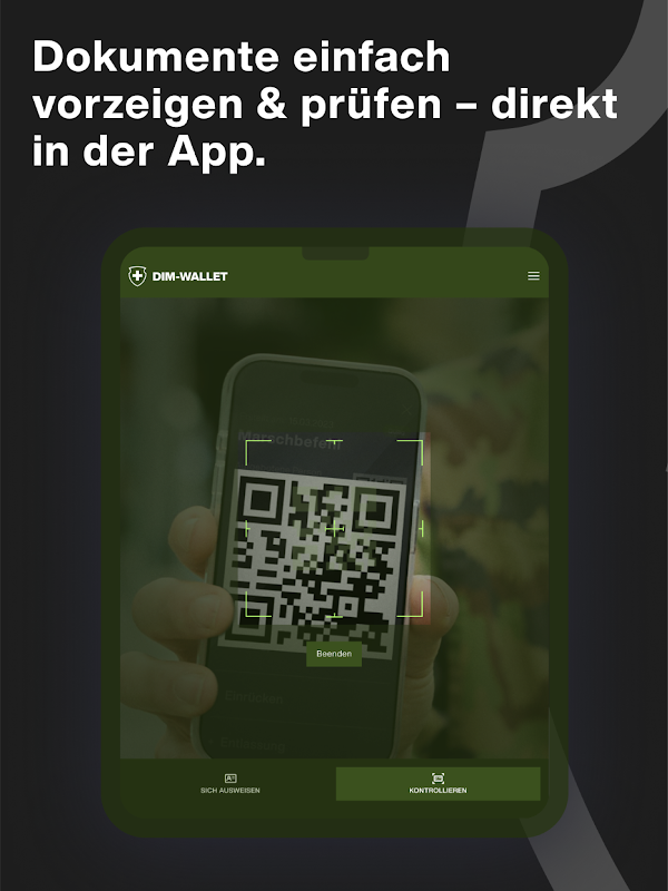 DIM ウォレットは、軍隊 (AdA) のメンバー向けのモバイル アプリケーションです。これにより、AdA は個人の軍事文書をオフラインおよびデジタルで利用できるようになります。 DIM ウォレットを使用すると、AdA は作業前、作業中、作業後にペーパーレスで身元を確認できます。