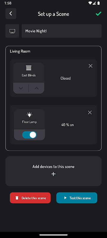 最大 6 つのカスタム シーンを作成して、すぐに快適さと利便性を実現します。 「映画の夜」、「朝のルーティン」、または独自のクリエイティブなセットアップなど、ライフスタイルに合わせて複数のデバイスを同時にアクティブにします。