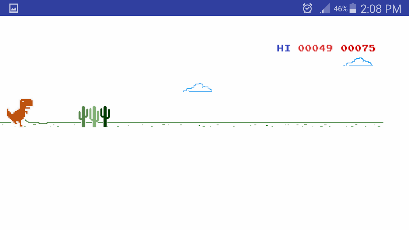 Just tap on the screen for T-Rex to jump over the obstacle and earn points.