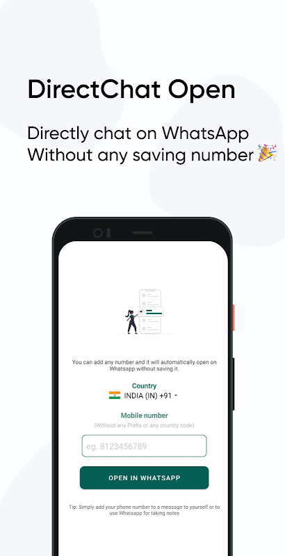 DirectChatオープン-番号を保存せずにWhatsapp。