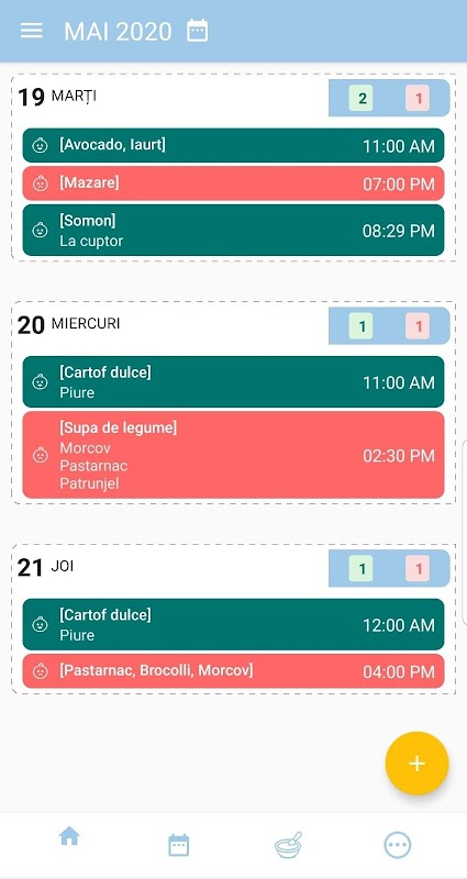 あなたが赤ちゃんに紹介した食べ物とそうでなかった食べ物をすべて覚えるのは難しいですか? 「多様化」がお手伝いします!赤ちゃんに提供されるメニューを簡単かつ整理してください。あなたはいつでも食事の要約を見ることができます。私たちはすでにあなたのために事前定義された食品のリストを持っています。食べ物が見つからない場合は、好きな食べ物を追加できます。