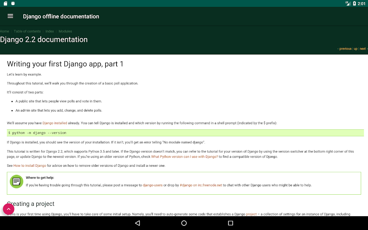 このアプリケーションは公式のPython Djangoドキュメントのフルオフライン版を提供します。