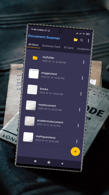 文書は分類されています:名刺、IDカード、学術文書、個人用タグなど。したがって、この機能は各カテゴリ文書を別のビューに表示するのに役立ちます。