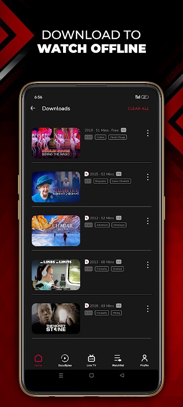 ● Watchlist: Whenever you find a documentary that you want to watch later or watch again, you can add it to your Watchlist for easy access.