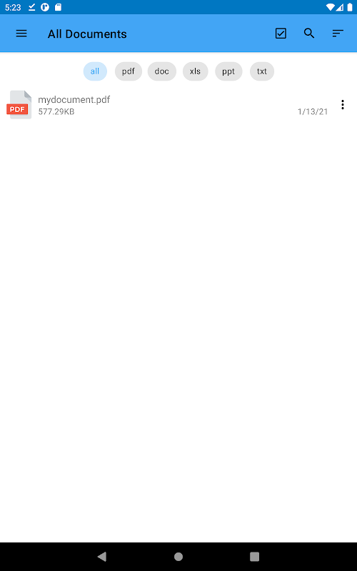 Document Manager は、最高のユーザー エクスペリエンスを念頭に置いて作成されました。アプリを開いた直後に、1 つの画面ですべてのドキュメントにアクセスできます。メイン画面では、数回タップするだけで多数のフィルターを適用できます。また、Document Manager は、途切れることなく、可能な限り高速に動作および起動するように最適化されています。