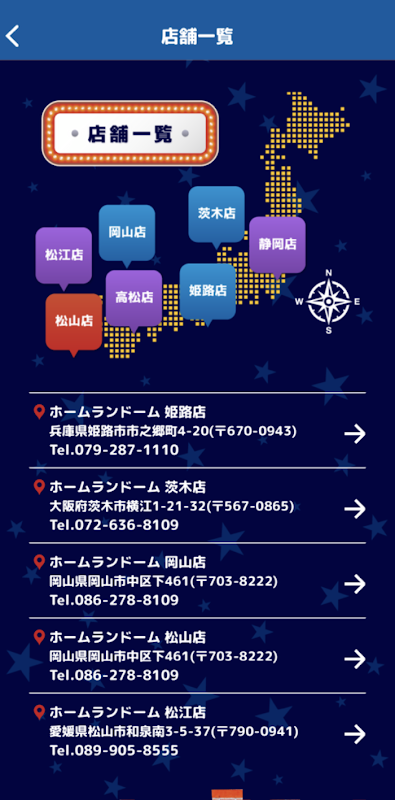 ・店舗検索:お近くのホームランドームの店舗情報が確認できます。