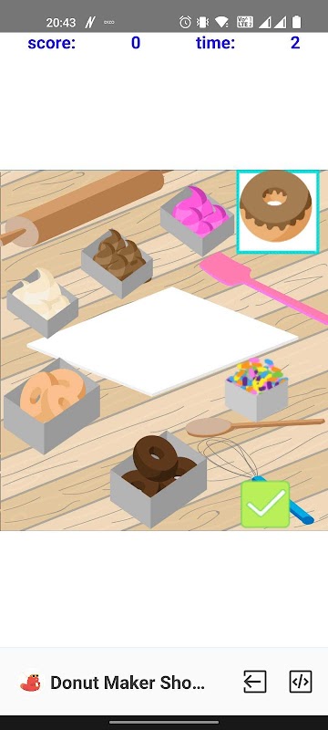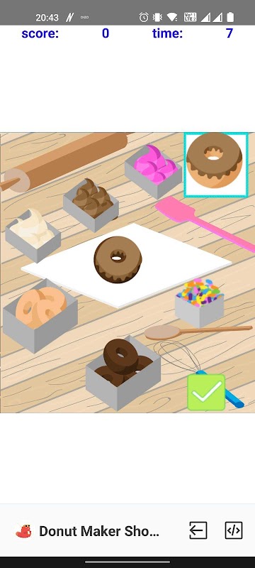 ドーナツメーカーアプリです。ここでの目標は、30 秒で少なくとも 10 個のドーナツを作ることです。正しいドーナツを作ると 1 ポイントを獲得し、間違ったドーナツを作ると 1 ポイントを失います。