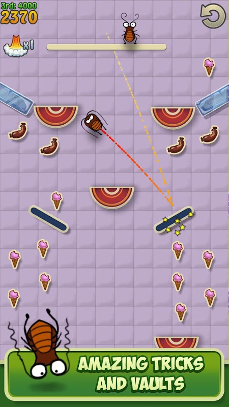 あなたの虫が世紀の跳馬を成功させ、世界中の観客と審判のハートを掴みましょう!審査員は厳格ですが、大胆かつ勇敢に、美味しい残り物をたくさん掴んで飛び込めば、きっと完敗します!全 50 レベルで優勝表彰台に立つには、文字通り頭を砕かなければなりません。でも、まあ、何事にも代償はあります。