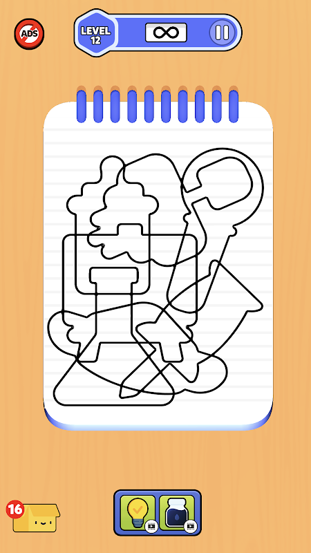 ノートに落書きされた隠されたオブジェクトを発見します。タップしてオブジェクトを塗りつぶし、表示します。