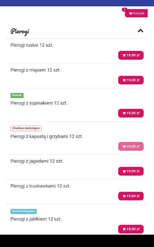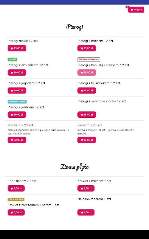 Dobczyce の Dora レストランから料理を注文するためのアプリケーション。