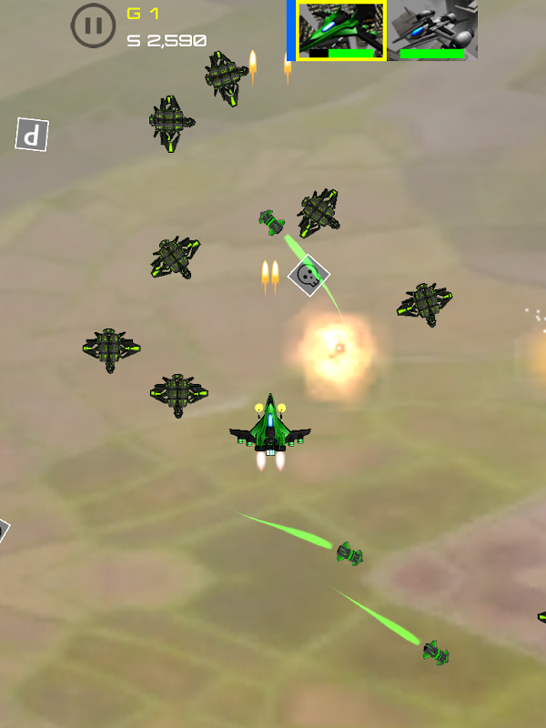 2台の飛行機を交互に使用しているフライトシューティングゲームです。