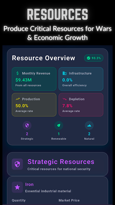 この没入型地政学的戦略シミュレーターで国家の運命を指揮しましょう!新興勢力としてスタートし、戦略を熟知してトップに上り詰めましょう。DOWGE - World Superpower Simulator では、国家の運命をコントロールできます。経済、軍事、インフラ、社会政策について重要な決定を下し、国を世界的な超大国に変えましょう。