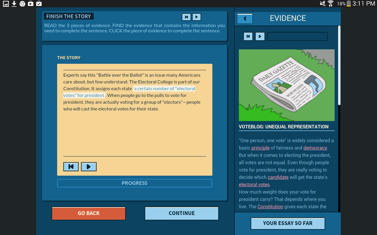 iCivics’ classroom tool Drafting Board offers interactive, scaffolded instruction for argumentative writing. It is a multi-day intervention that gives teachers the tools to support students as they learn to write evidence-based arguments. Drafting Board can help simplify the complexity of creating a Common Core-aligned learning environment. This free resource is integrated with the content of the iCivics curriculum and aligned to the Common Core standards.